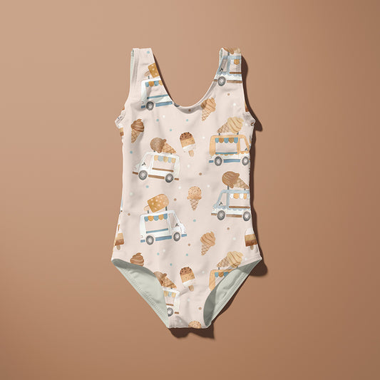 RESTSTÜCK 115cm Bademodestoff Eis toffee