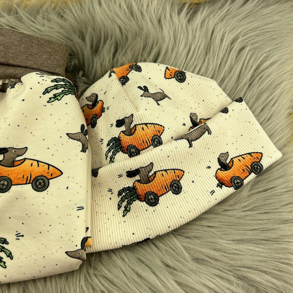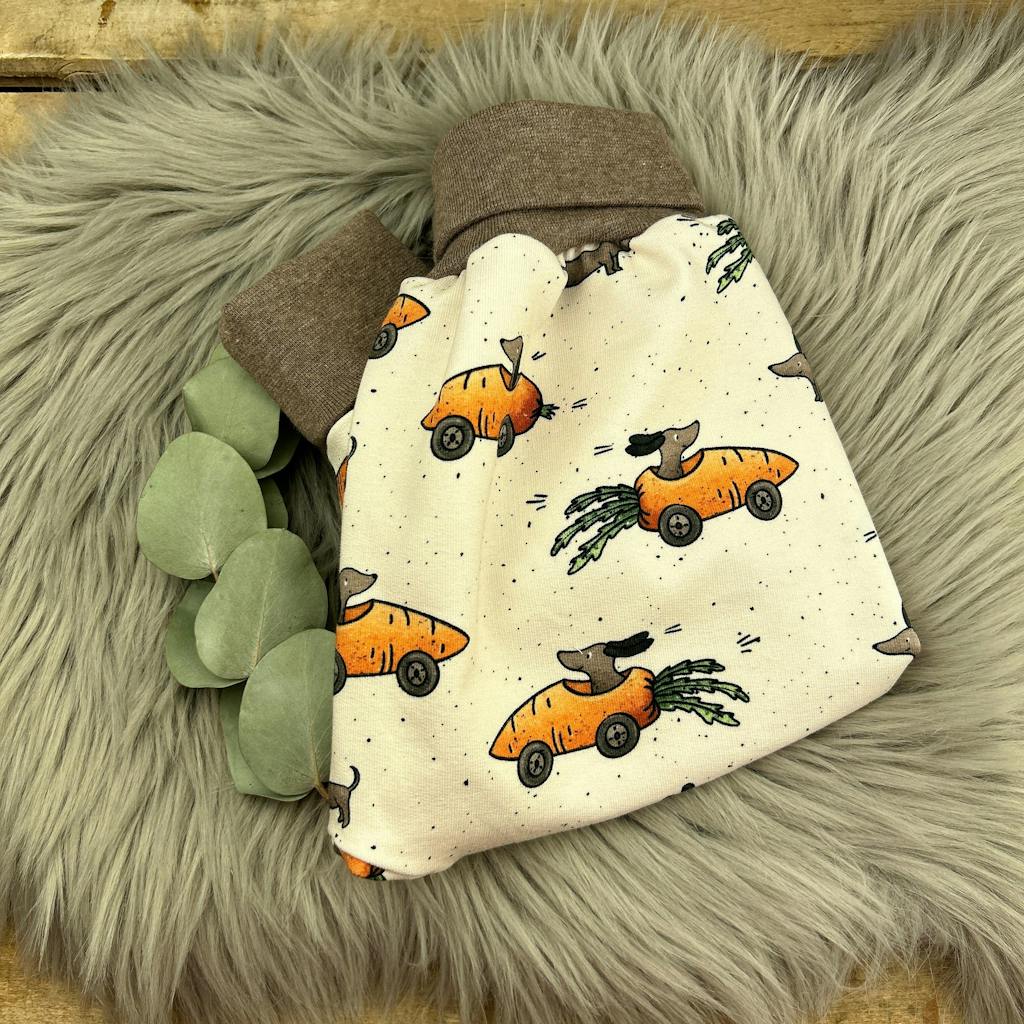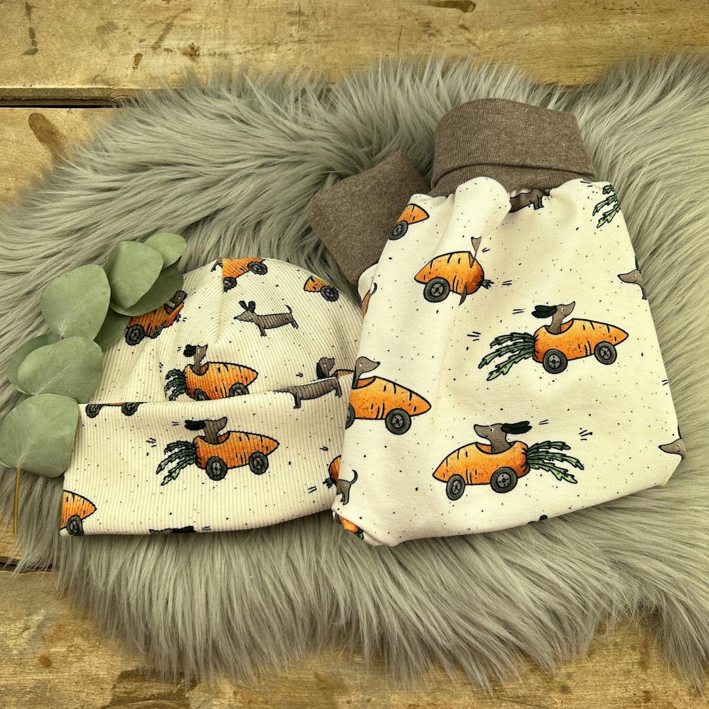 Nea hat einfach die schönsten und tollsten Stoffe :) ich nenn diesen Stoff immer Möhrenflitzer und er ist einfach so goldig! Ich finds cool dass es den Stoff auch als Ribjersey gibt :)